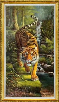 • 精品手绘油画老虎猛虎王者风范实力名家作品收藏油画实木画框
