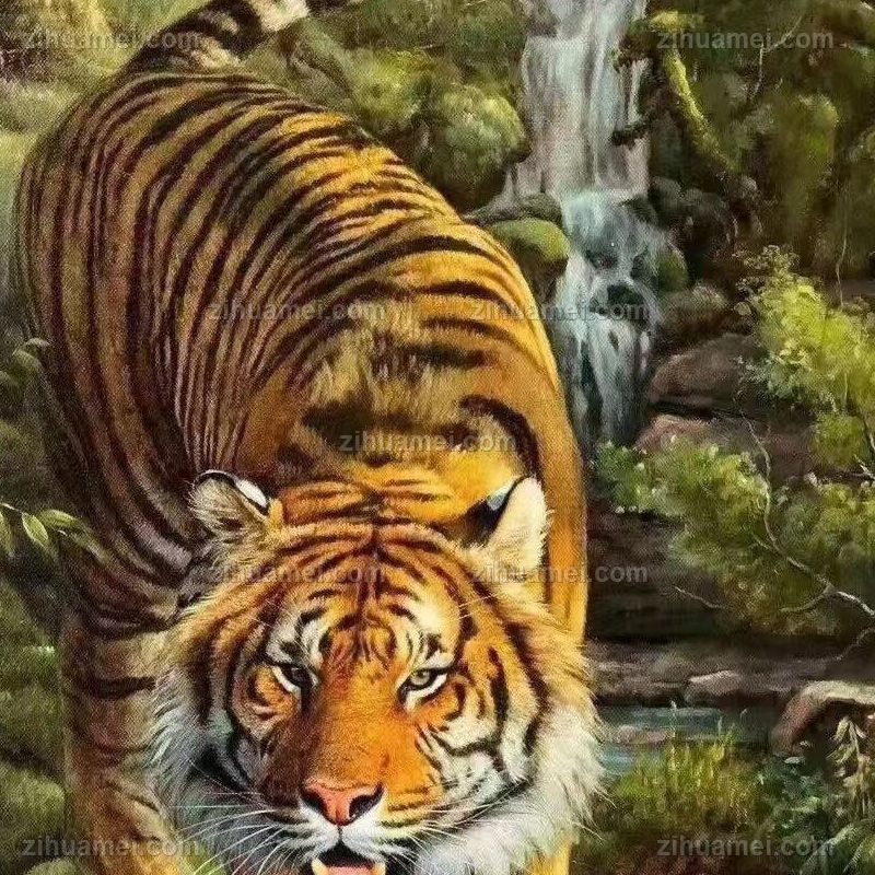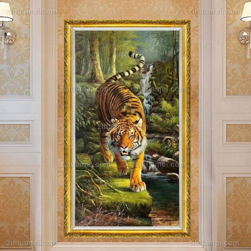 老虎写实油画纯手绘动物油画新中式客厅挂画 手绘