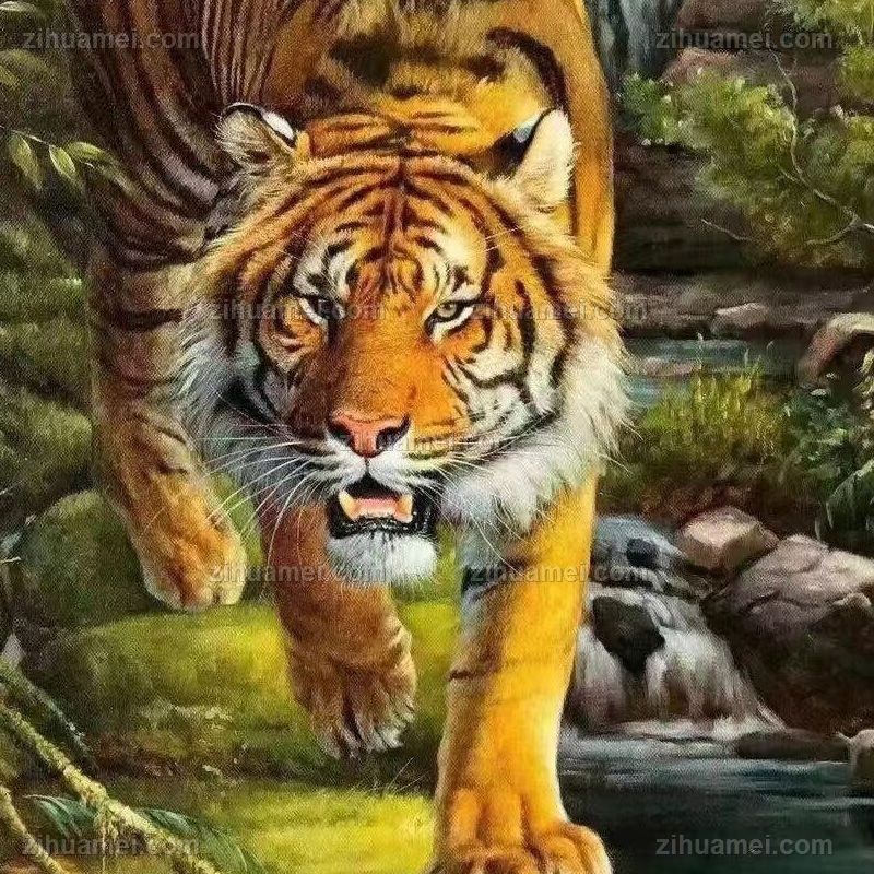 动物写实油画老虎图纯手绘动物油画办公室挂画 手绘
