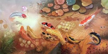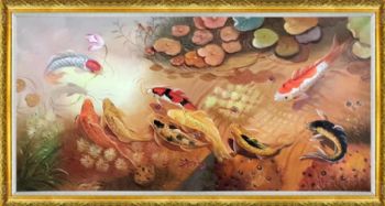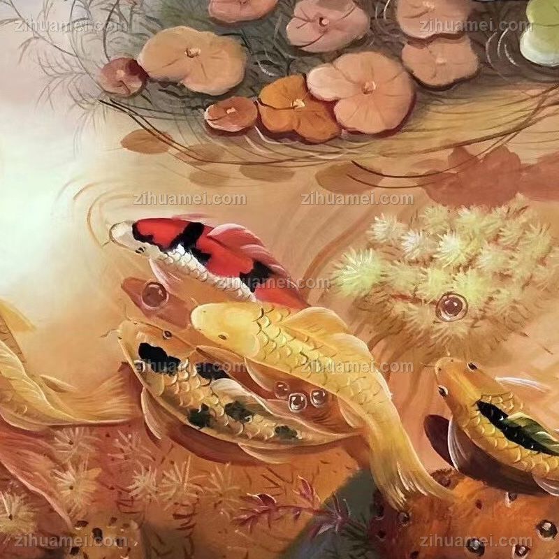 • 原创写意九鱼图高品质手绘油画新中式油画寓意年年有余和和美美油画