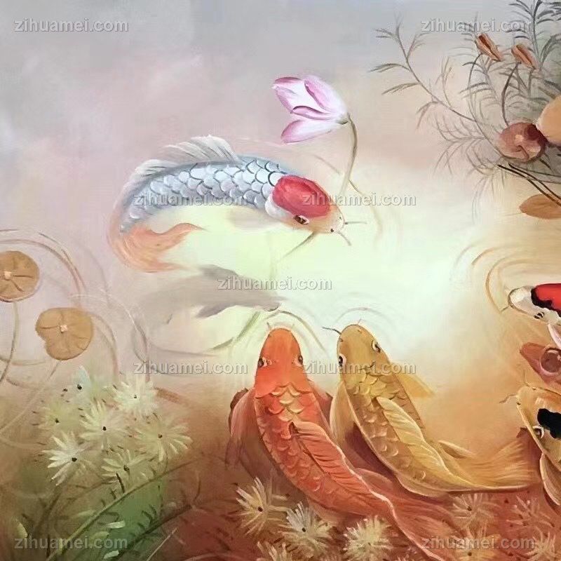精品写实纯手绘动物油画金龙鱼油画作品 手绘