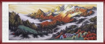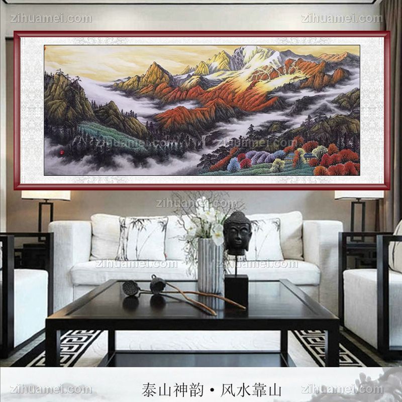 • 实木画框手绘大型国画