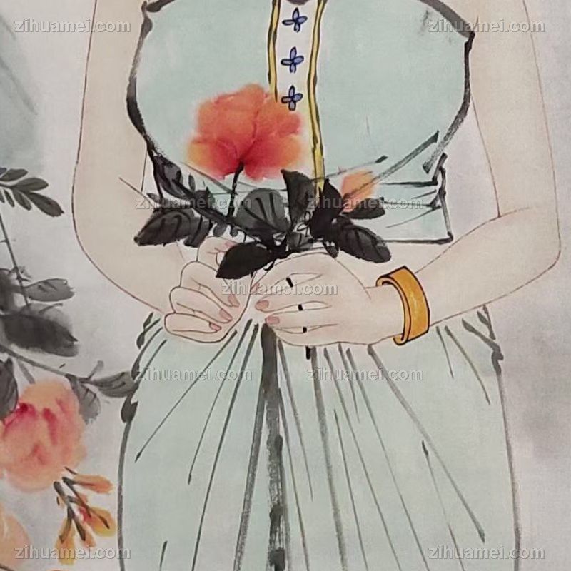 精品写实人物国画工笔国画美女国画人体国画 手绘