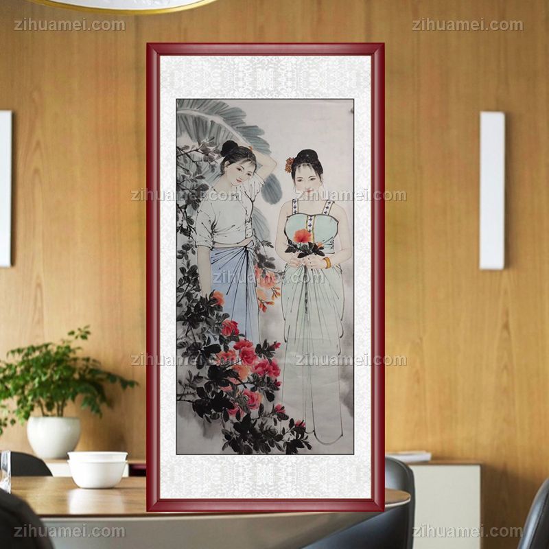 • 写意工笔国画人物国画高品质纯手绘水墨国画少数民族服饰美女人物图