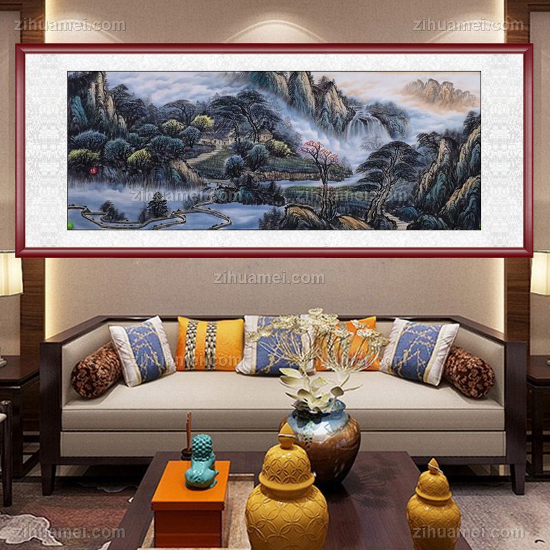 小六尺手绘山水画