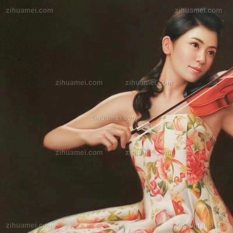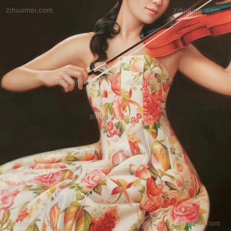 拉小提琴的美女油画人物