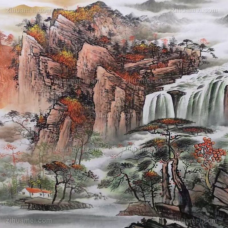 手绘写意山水国画