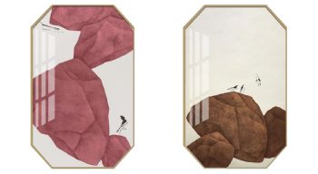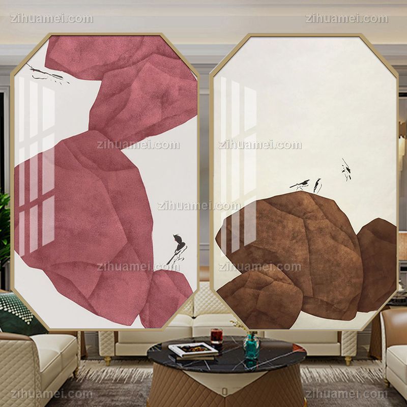 • 新中式八边形抽象晶瓷画铝合金装饰画适合酒店走廊卧室挂画