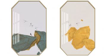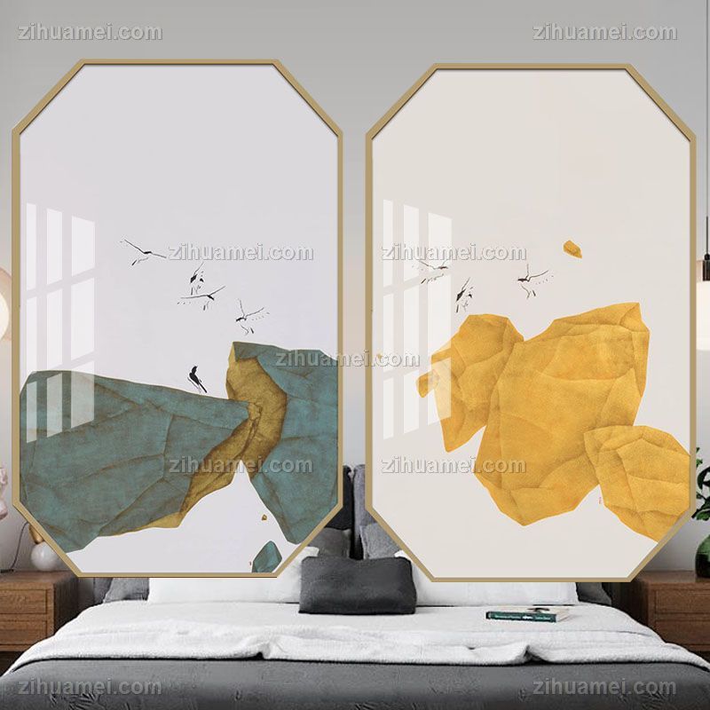 • 最近款晶瓷画新中式八边形抽象装饰画铝合金装饰画