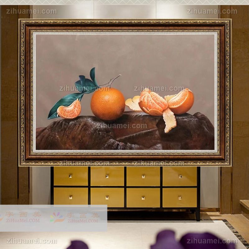 • 手绘写实静物油画桔子图写实油画适合餐厅酒店挂画实木画框