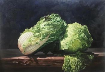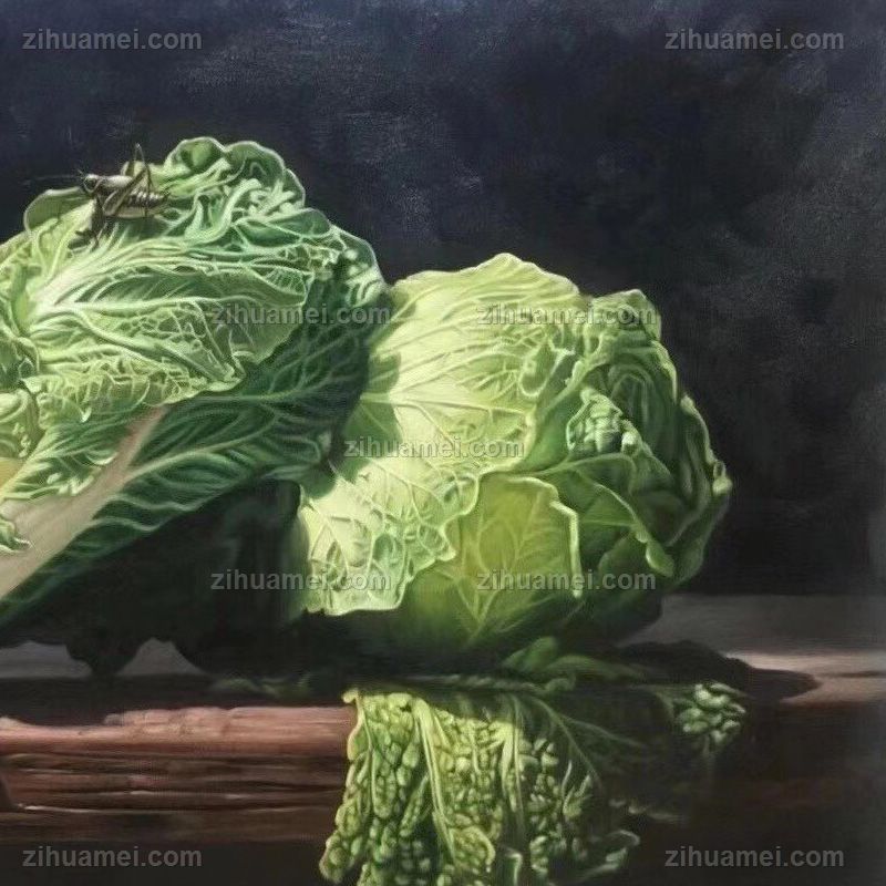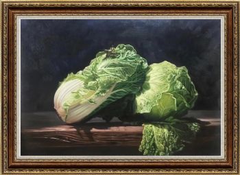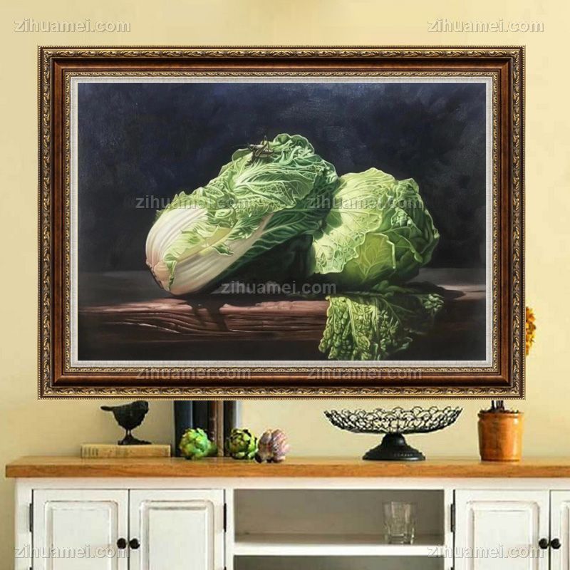 • 手绘静物油画大白菜写实油画寓意发大财新中式装饰油画实木外框