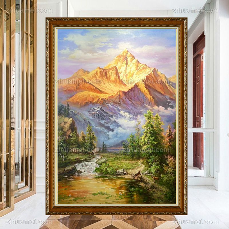 • 新中式写意风景油画金山背靠大山路路发财源广进中式高品质风水油画