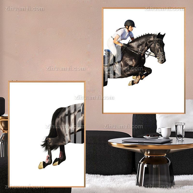• 现代年轻装饰风格轻奢晶瓷画现代贵族运动赛马骑士图样板房挂画