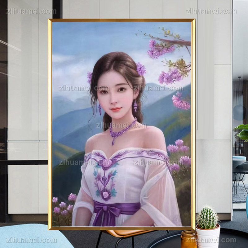 • 精品新中式现代原创写实油画艺术纯手绘人物油画美女油画作品