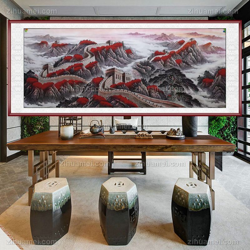 • 水墨国画大丈二长城国画红鸿当头长城气势雄伟适合办公室会议室装饰国画支持个性提词