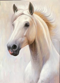 当代艺术大写意白马系列纯手绘马头油画作品 手绘