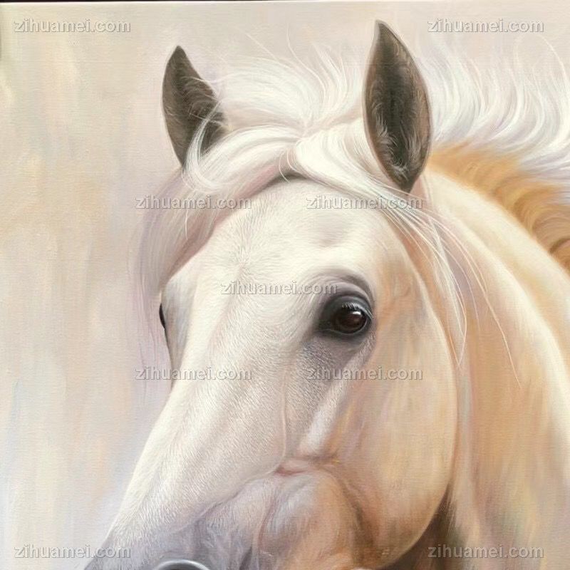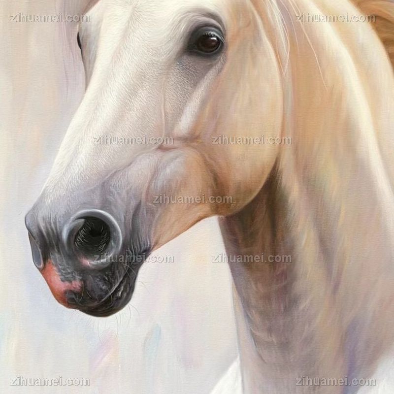 精品花卉白马图纯手绘写实动物油画实木画框 手绘