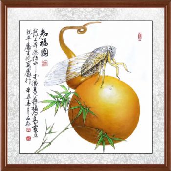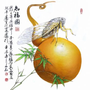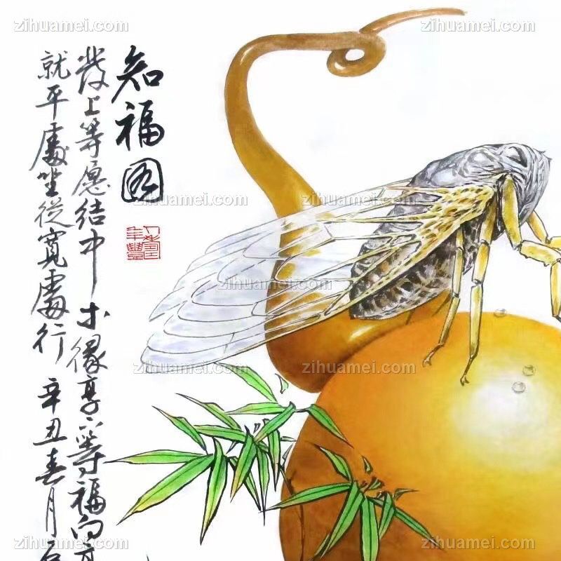 • 写实国画葫芦和知了寓意知福图中式水墨国画花鸟国画