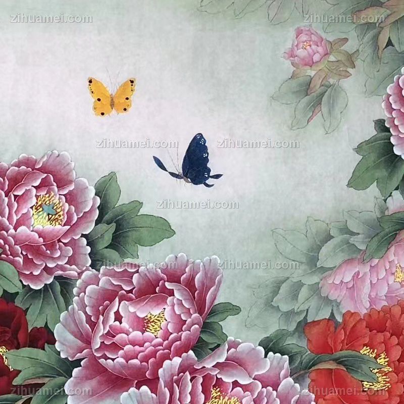 • 小六尺工笔国画花鸟国画牡丹蝴蝶图寓意大富大贵吉祥如意纯手绘水墨画