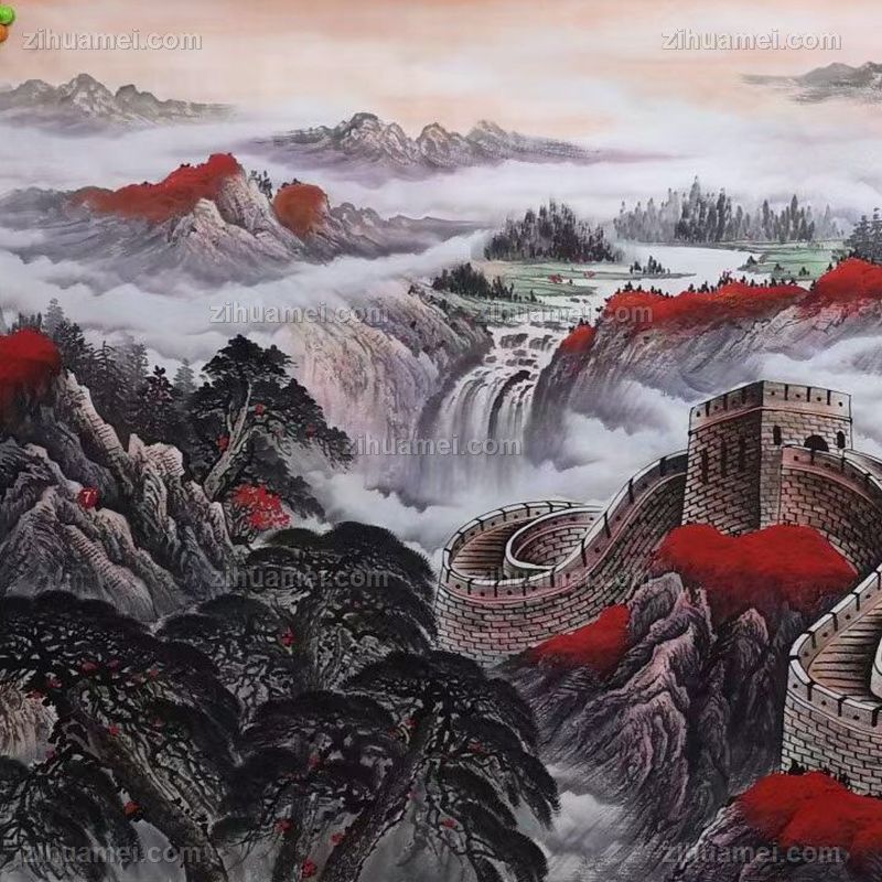 • 雄姿万丈风水国画高品质国画风景画纯手绘长城国画鸿运当头大丈二国画支持个性提词