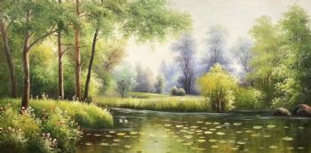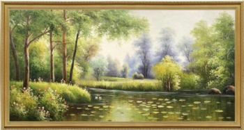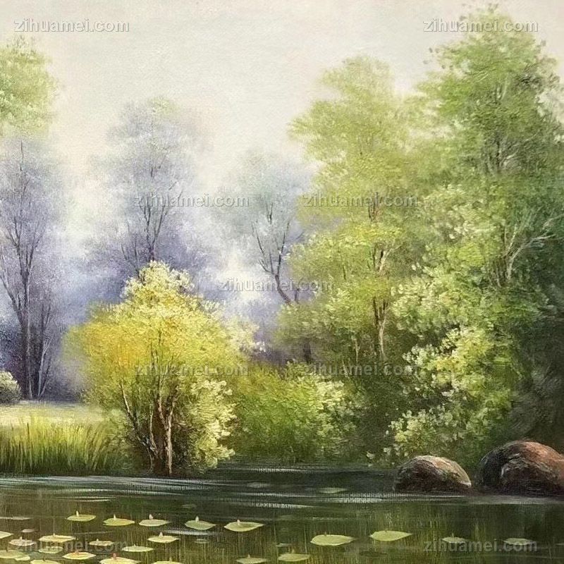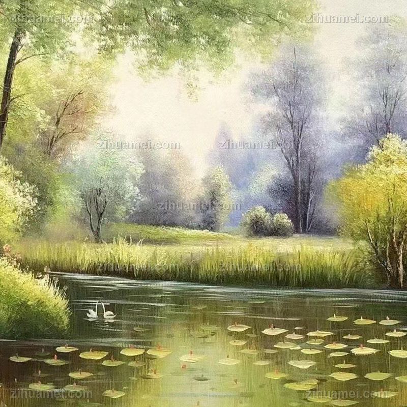 • 写意油画风景画绿树碧水风景画纯手绘油画适合客厅装饰画
