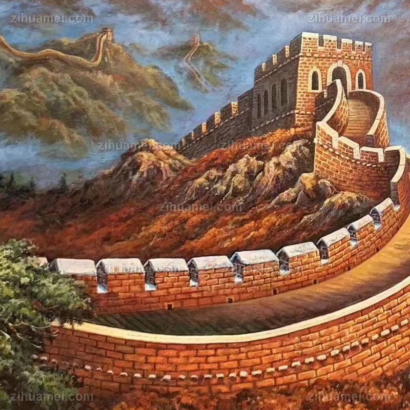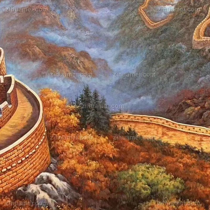 新中式长城风景油画纯手绘工笔写实油画 手绘