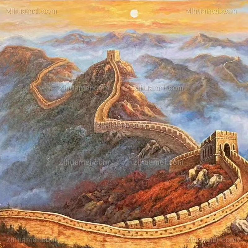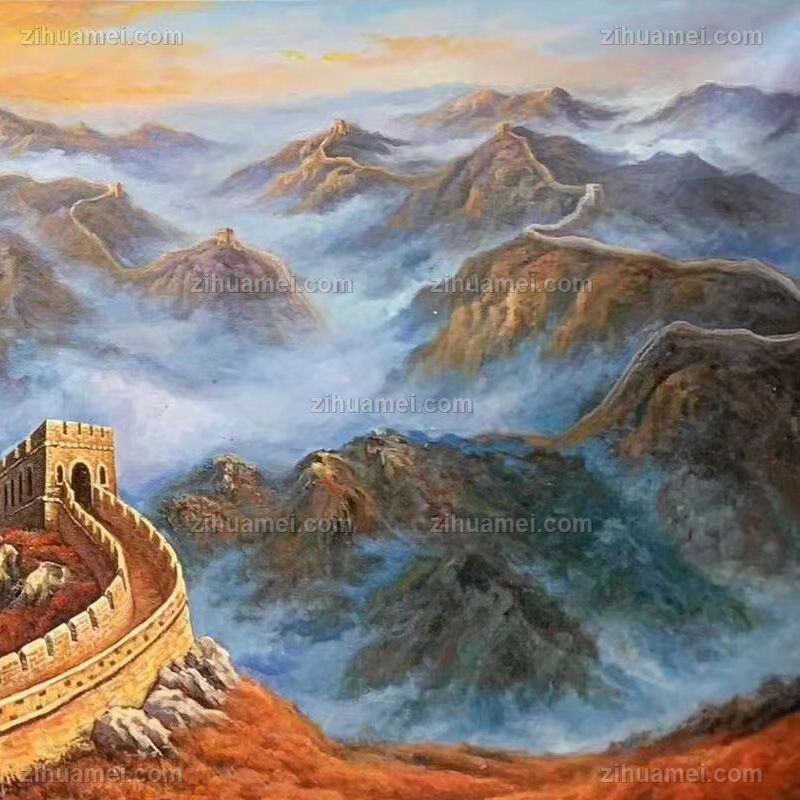 江山一条龙长鸿风景油画纯手绘长城风景油画 手绘