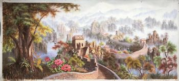 • 手绘风景画新中式油画风景画长城风景画适合大厅装饰油画