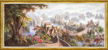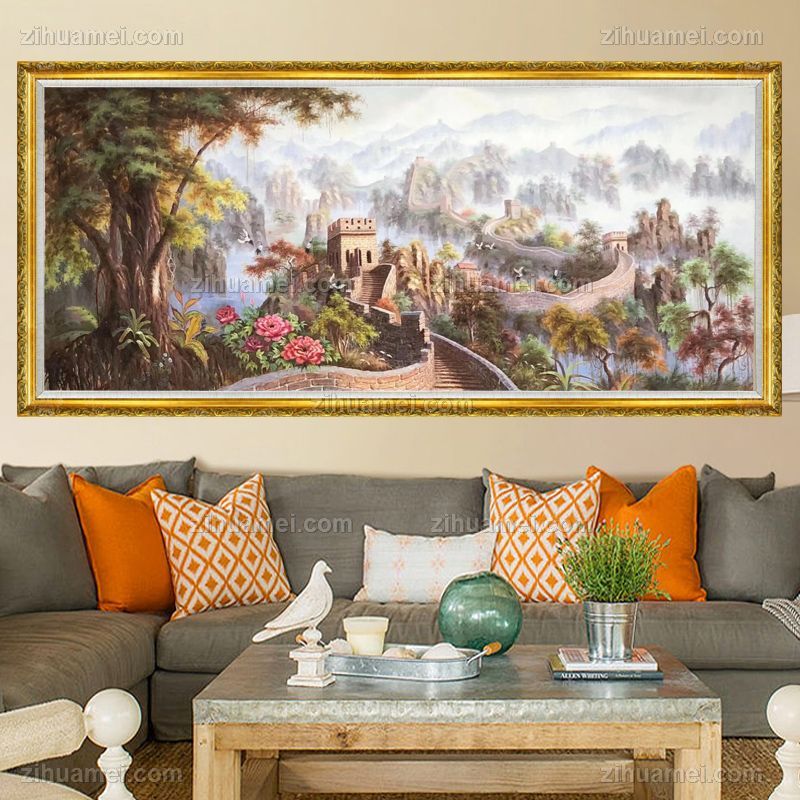 基业长青新中式手绘长城风景油画实木画框 手绘