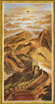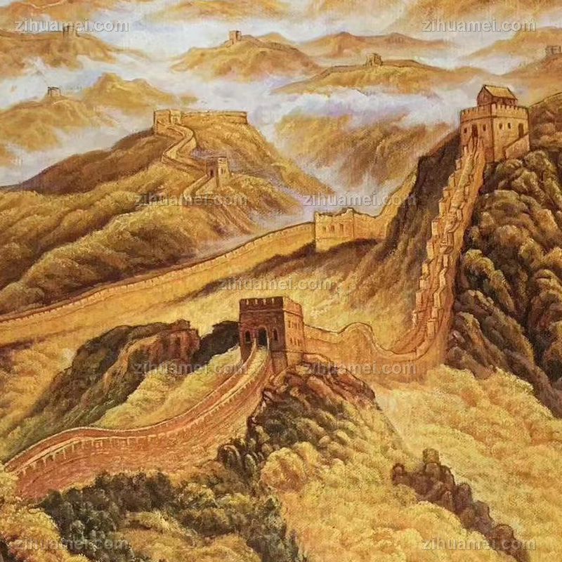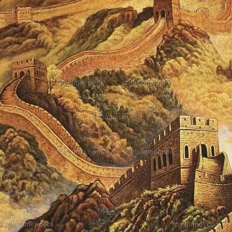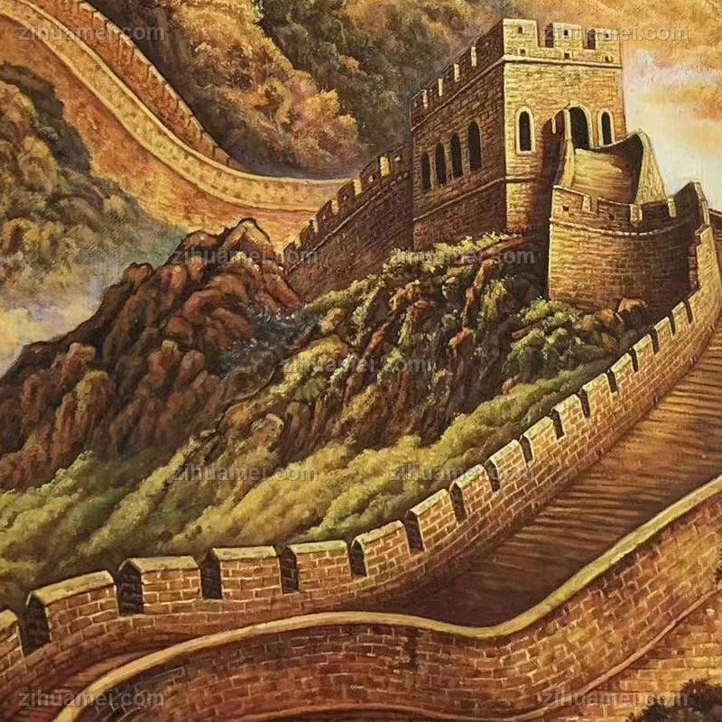• 中式油画原创手绘风景画寓意步步高升万里长城大型油画实木画框