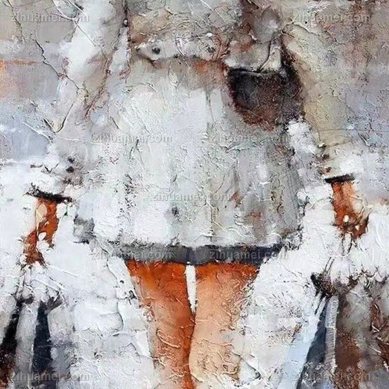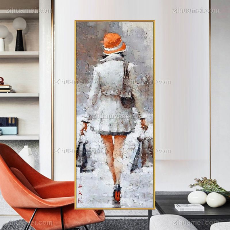 • 纯手绘油画抽象人物油画双手拎购物袋的女孩客厅装饰画厚油玄关竖版挂画