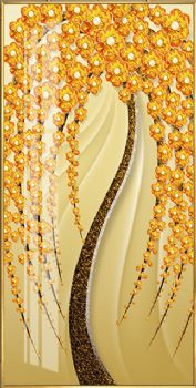 现代高清大型晶瓷画黄金树风水画新中式装饰样板房客厅装饰画 高清微喷