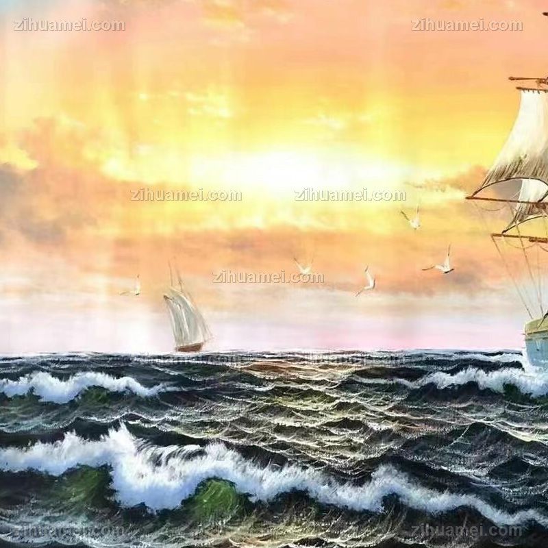一帆风顺精品海浪帆船风景油画纯手绘油画 手绘