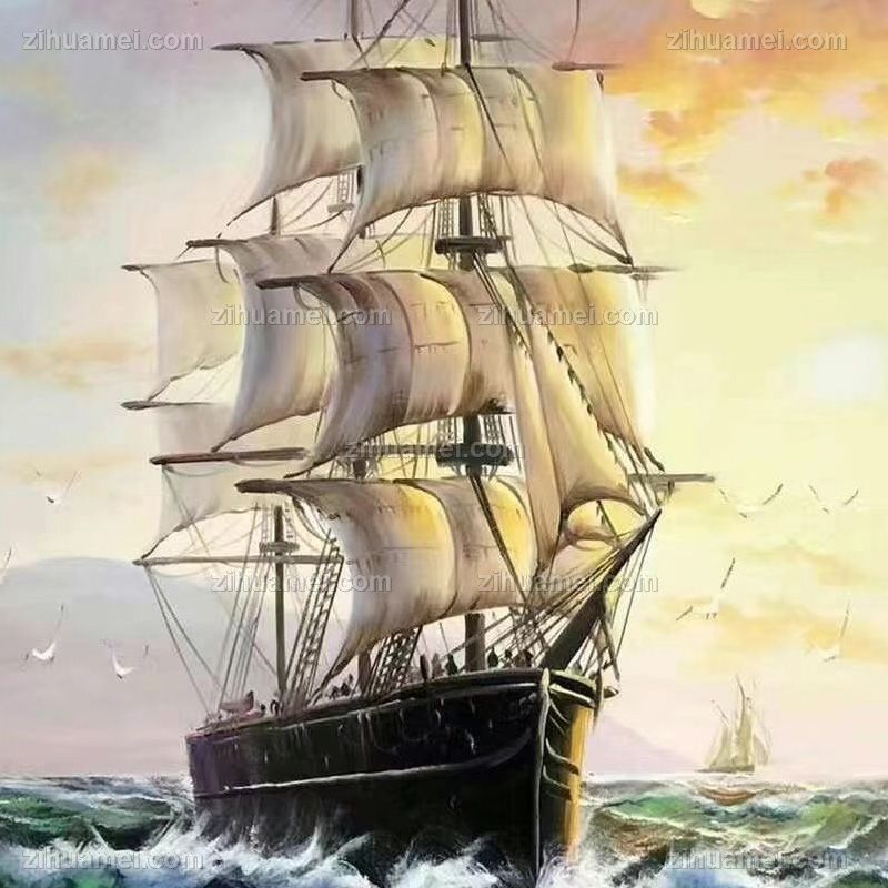 一帆风顺精品海浪帆船风景油画纯手绘油画 手绘