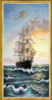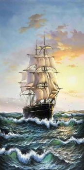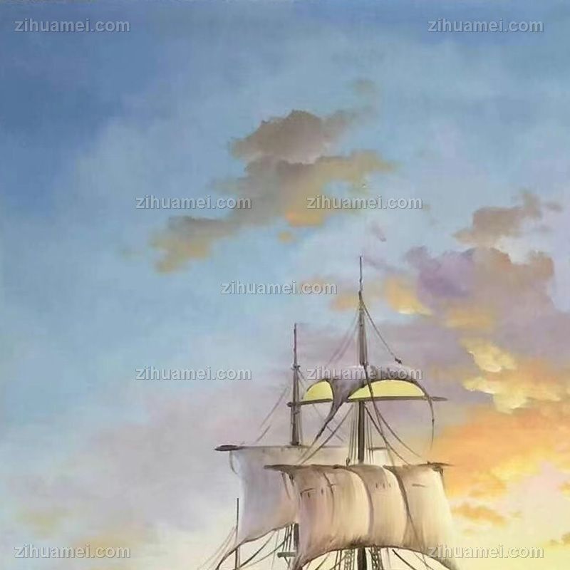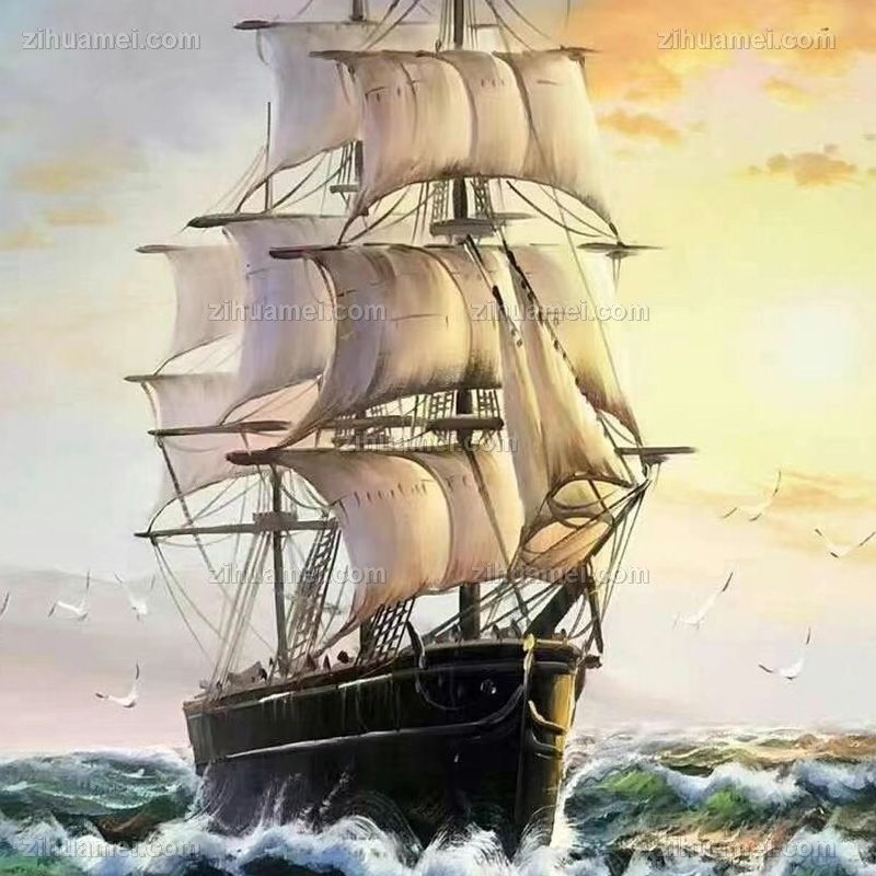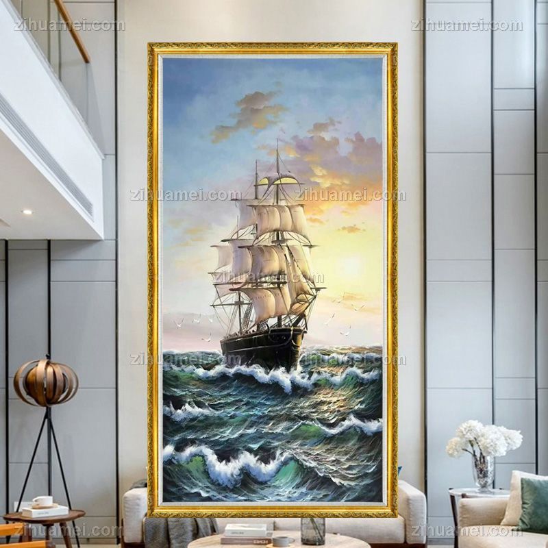 • 迎风破浪一帆风顺纯手绘油画欧式帆船装饰画办公室书房挂画