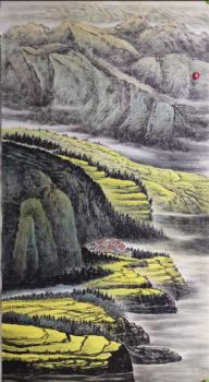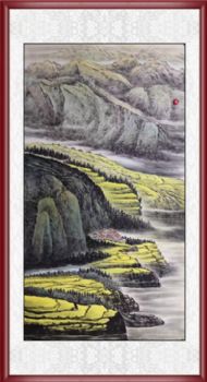 • 精品六尺山水画三峡风貌纯手绘山水国画水墨山水画实木画框