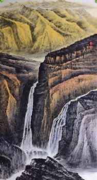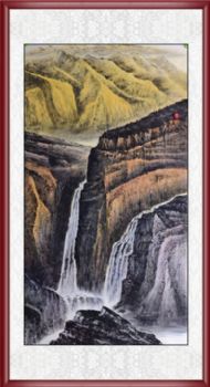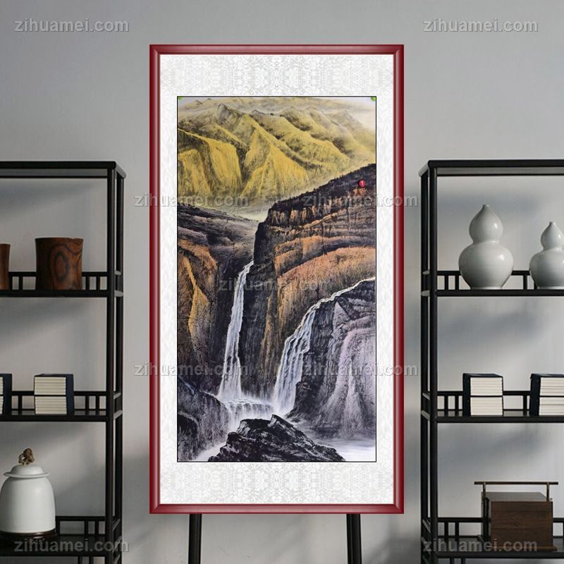 • 飞流直下三千尺精品六尺山水画三峡风貌纯手绘竖幅山水国画水墨山水画实木画框
