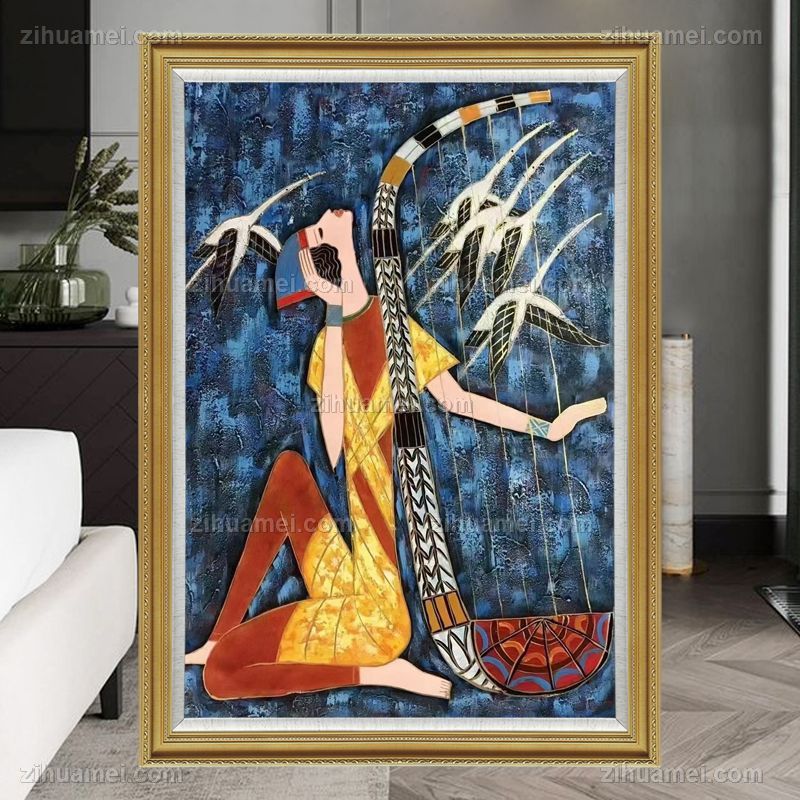 • 厚度肌理油画竖琴表演艺术写意原创手绘民族风情手绘人物油画
