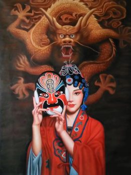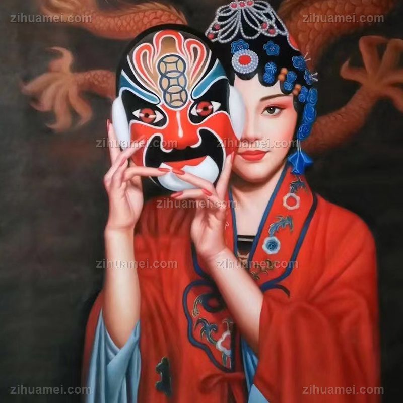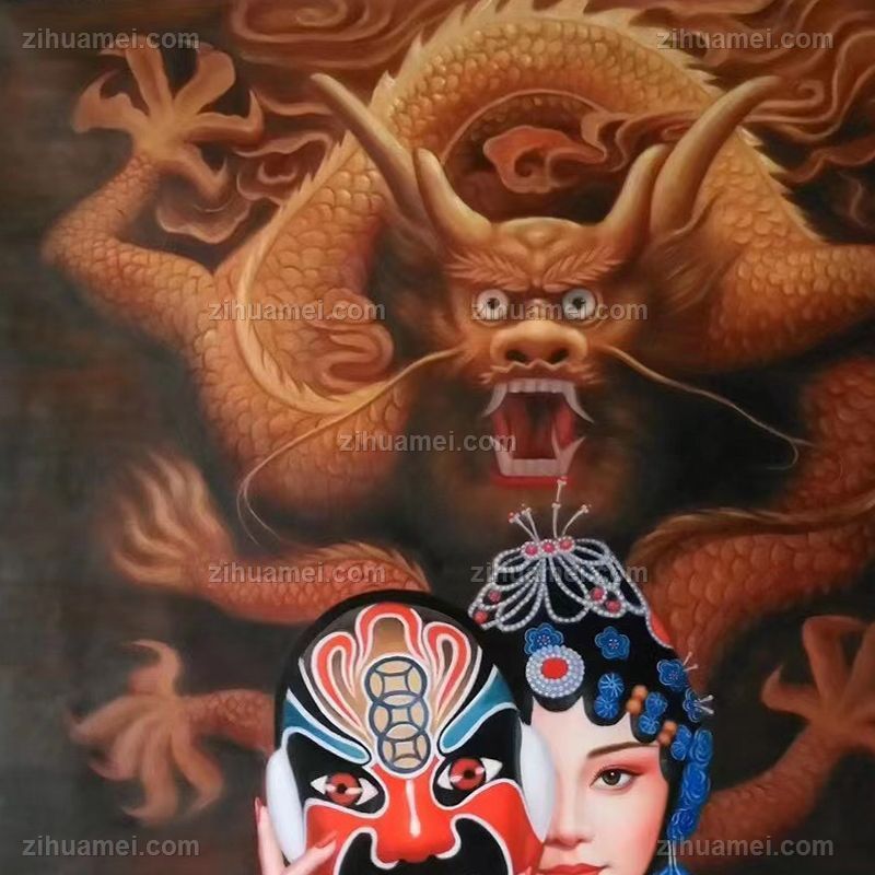 • 龙图腾国粹京剧人物精品人物写实油画脸谱油画纯手绘油画客厅油画