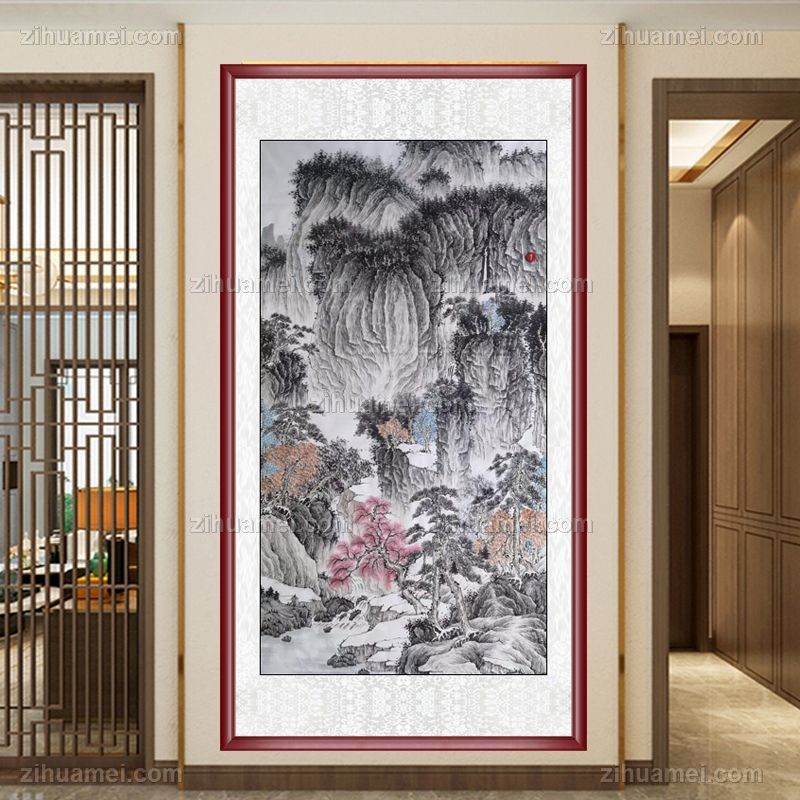 • 淡雅水墨风景画精品山水国画六尺纯手绘国画实木画框餐厅适合挂的画