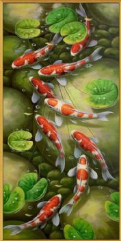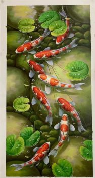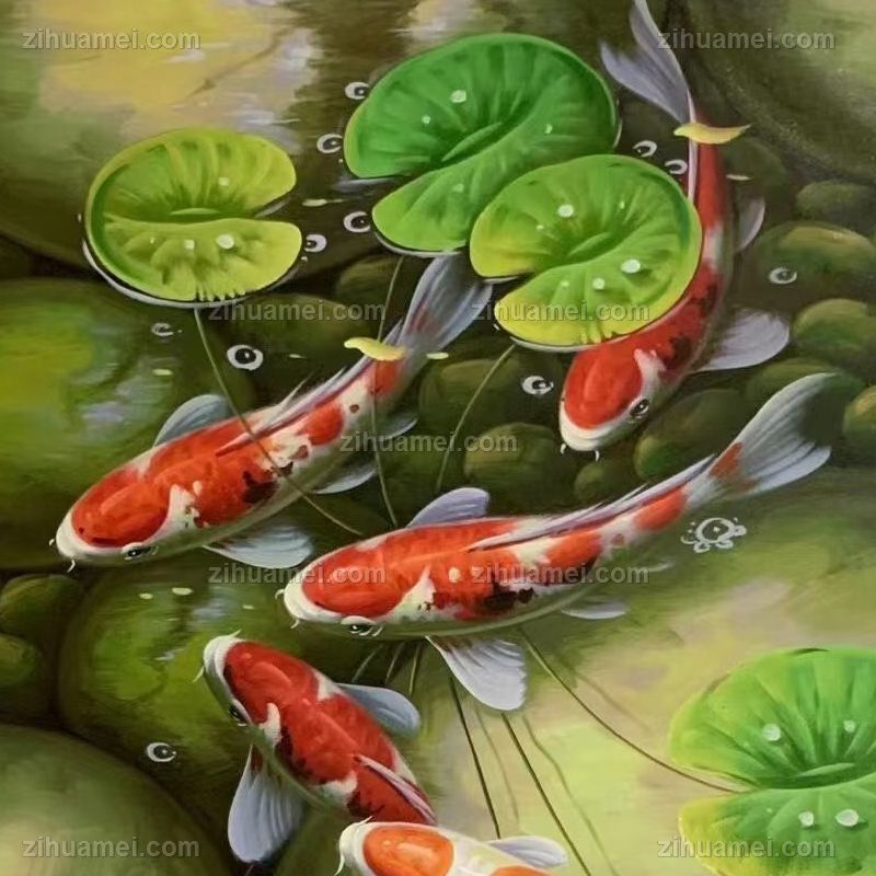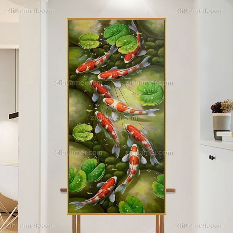 玄关九鱼图纯手绘写实锦鲤油画作品实木外框 手绘