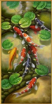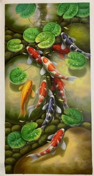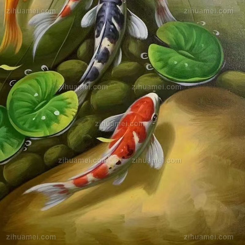 玄关九鱼图纯手绘写实锦鲤油画作品实木外框 手绘