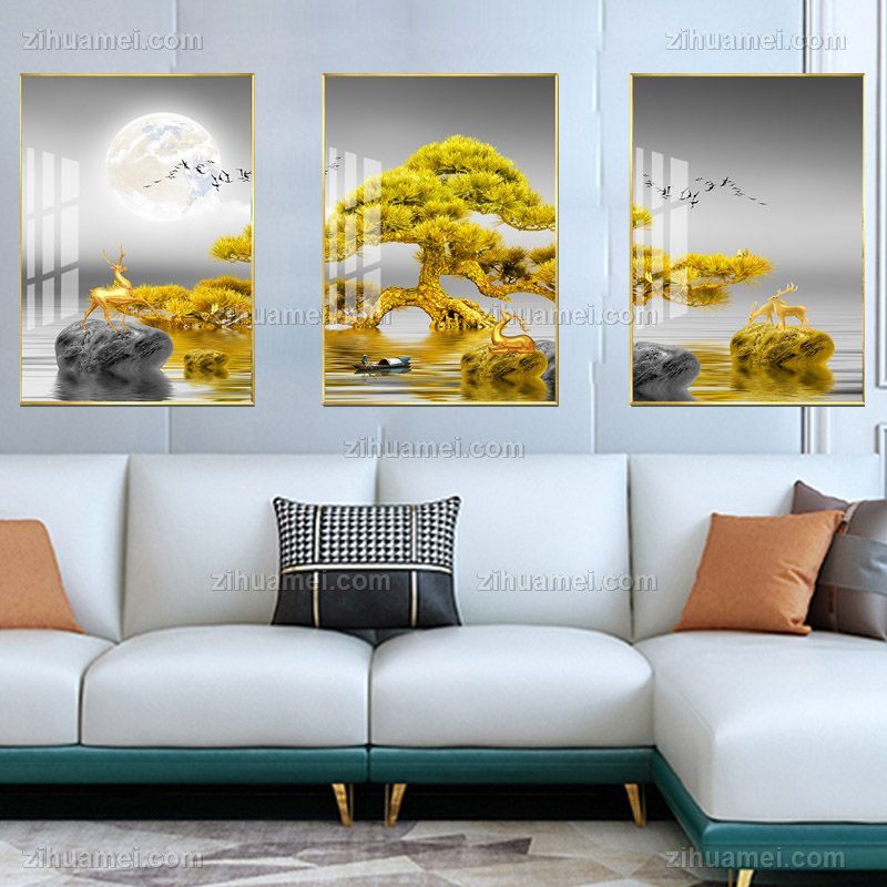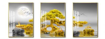 • 日夜发财黄金树一路向前客厅高档轻奢晶瓷画铝合金框现代中式