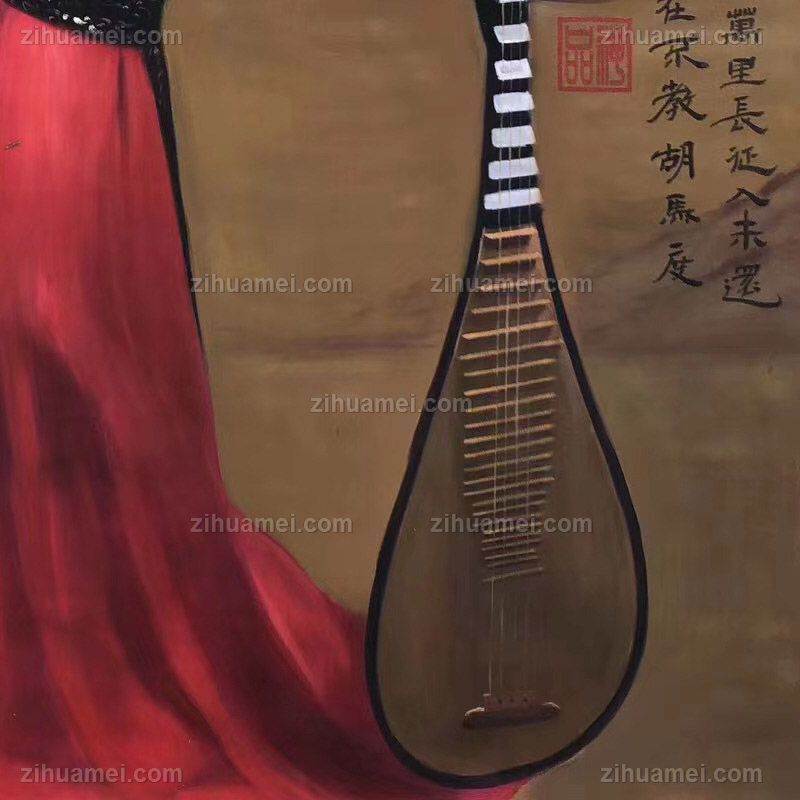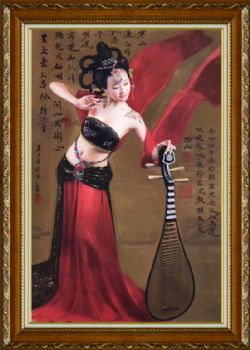 • 人物油画美女与诗词手绘油画紫墨生香赛中原雄骏彤心焕彩书神州山河
