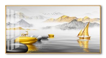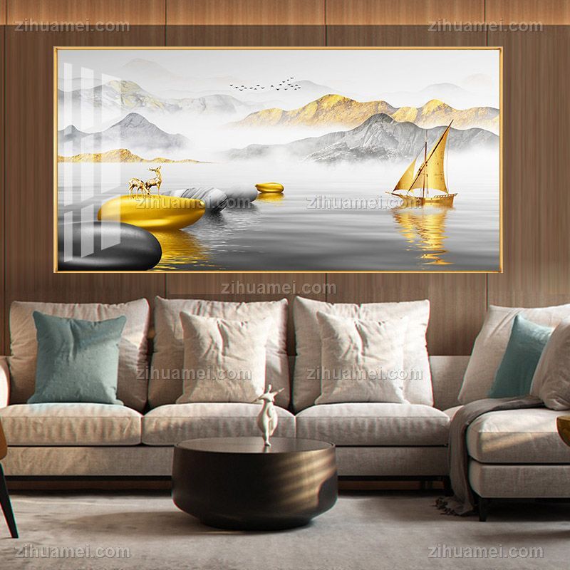 一帆风顺高清大型晶瓷画新中式装饰样板房客厅大厅装饰画 高清微喷