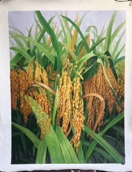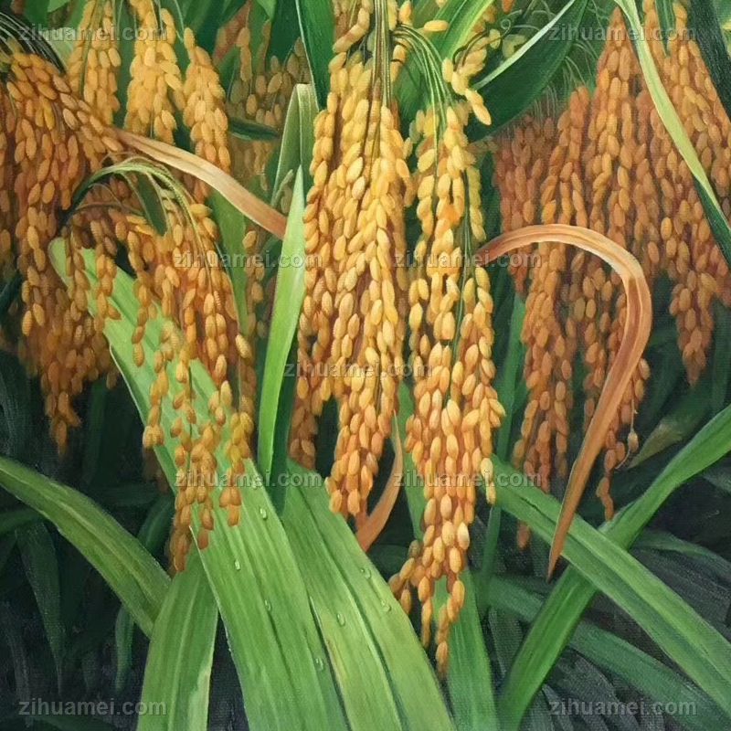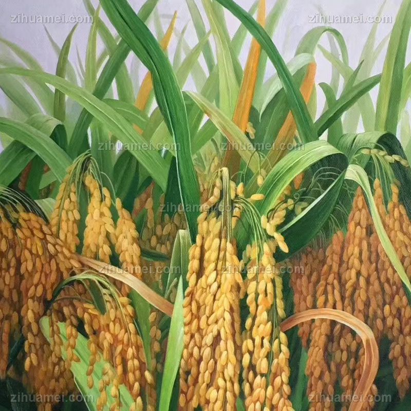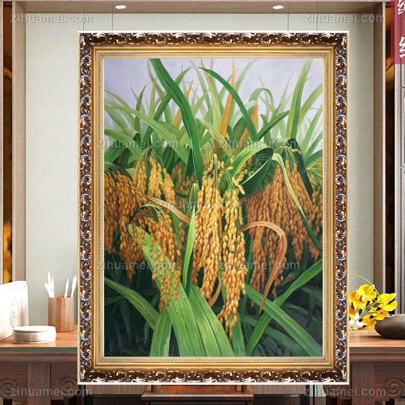 • 五谷丰登写实油画纯手绘油画金黄的稻子收获的季节新中式手绘油画