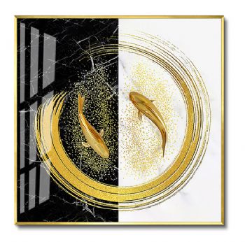 • 新中式风水高清晶瓷画卧室挂画现代装饰画样板房客厅年年有余装饰画