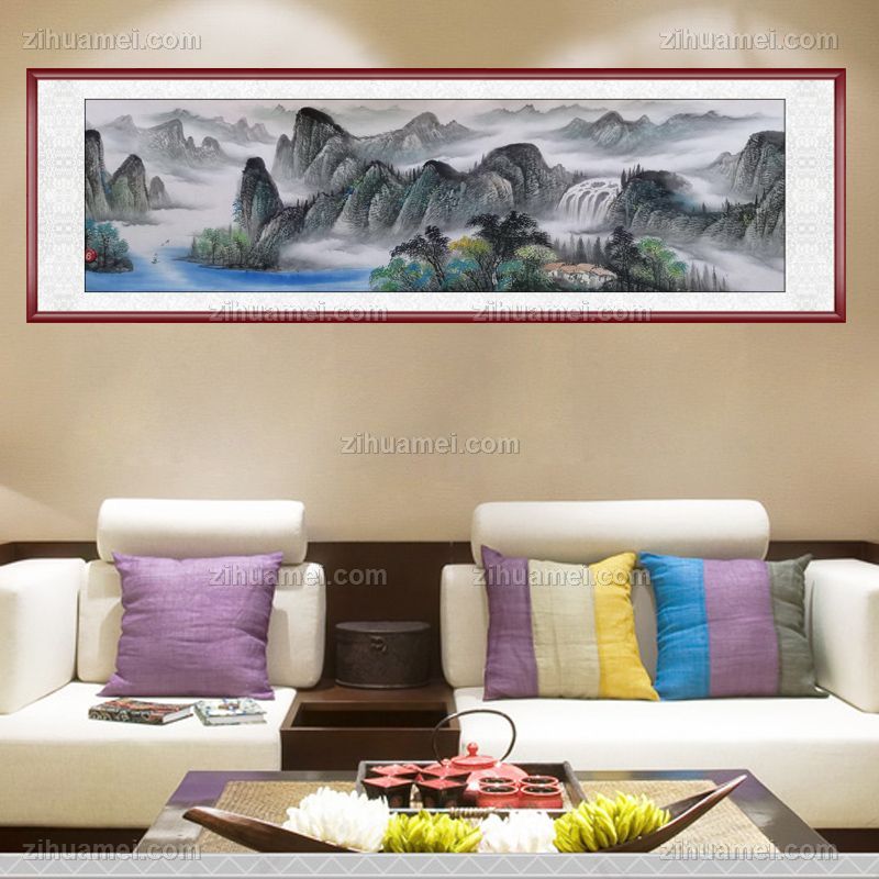• 写意风景画适合客厅餐厅山水国画六尺对开纯手绘山水画风水画实木画框