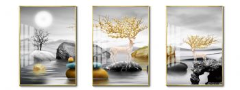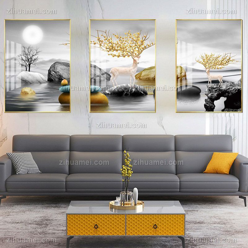 • 三联画一路向前高档轻奢晶瓷画铝合金框现代中式客厅样板房装饰画