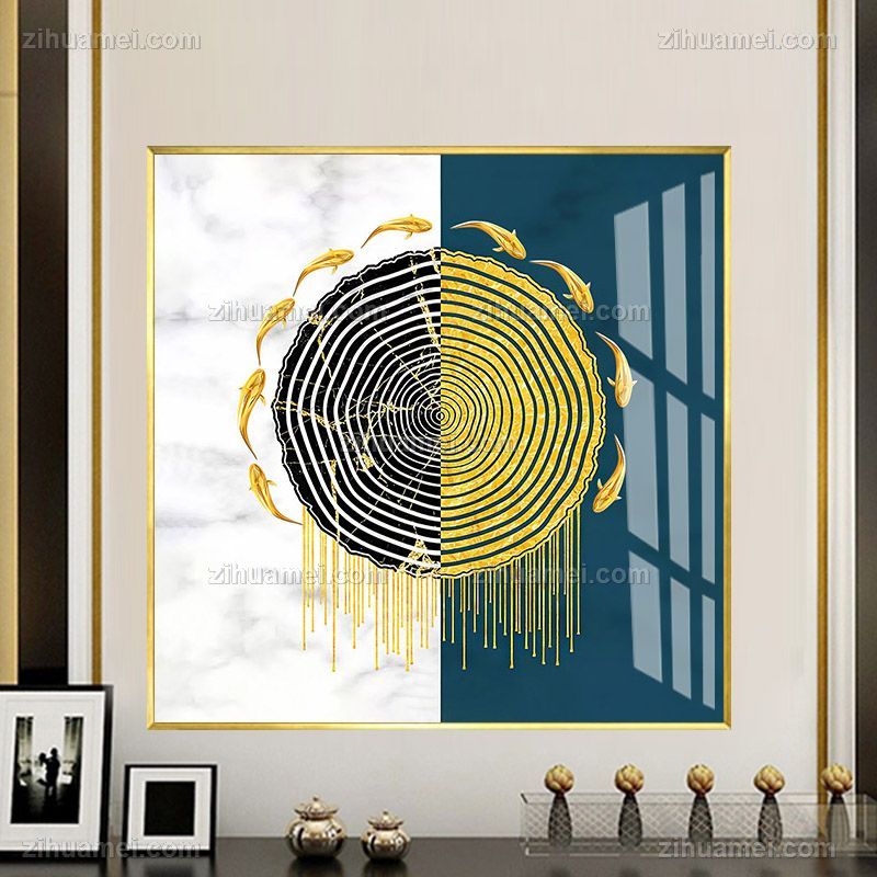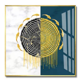 • 时运转转阴阳八卦新中式风水高清晶瓷画样板房客厅九鱼图装饰画